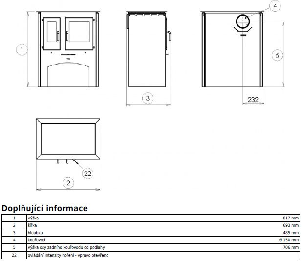 Kamna jsou určené do chalup a chat k vaření (s jednou výkonem silnější a jednou výkonem slabší plotýnkou), pečení a vytápění prostor.