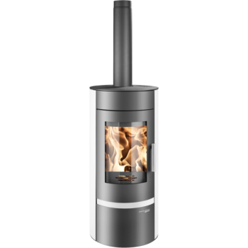 Kamna nemusí být jen hranatá, půdorys některých doslova opíšete kružnicí. Díky jejich tvaru můžete krbová kamna Antic bez problémů postavit do rohu. Připojení kouřovodu je vrchní. Barevné provedení je buď v klasické antracitové nebo s bílými boky.