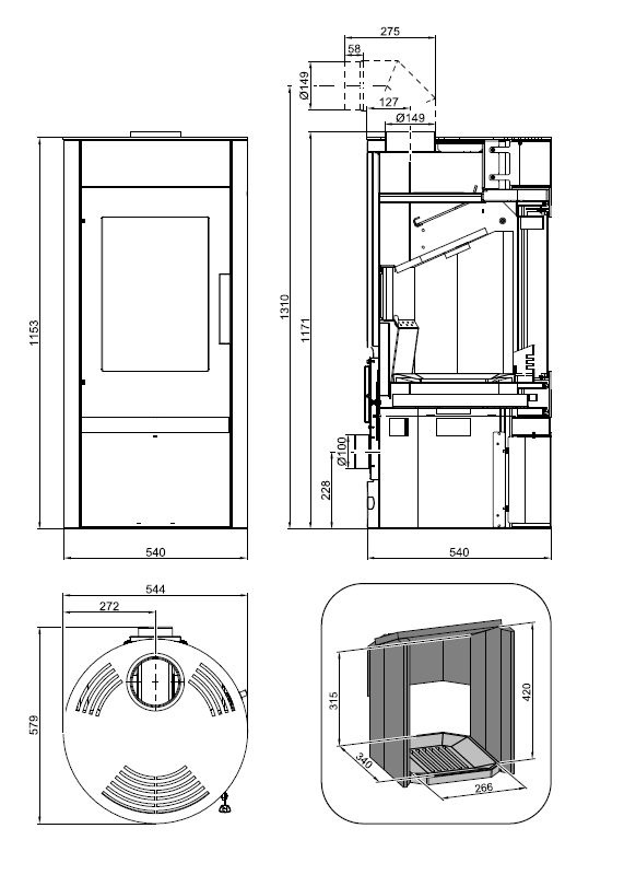 Kamna nemusí být jen hranatá, půdorys některých doslova opíšete kružnicí. Díky jejich tvaru můžete krbová kamna Antic bez problémů postavit do rohu. Připojení kouřovodu je vrchní. Barevné provedení je buď v klasické antracitové nebo s bílými boky.