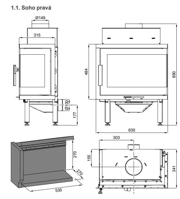 HAAS+SOHN - SOHO_rohová krbová vložka home, pravá, černá