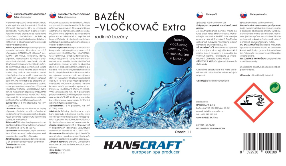 HANSCRAFT BAZÉN - VLOČKOVAČ Extra - 1 l
