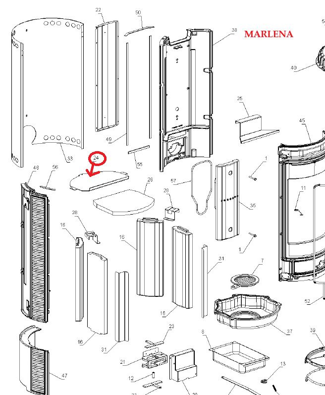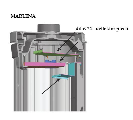 Náhradní delflektor pro kamna MARLENA rok výroby kamne 2019-2023 - ocelový díl v rozkresu č. 24