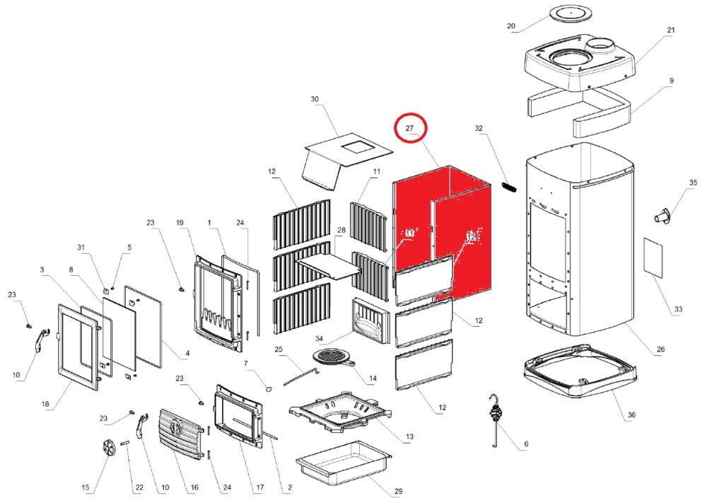 La Nordica - náhradní deflektor nerez pro kamna Stefany, Norvegia, Svezia