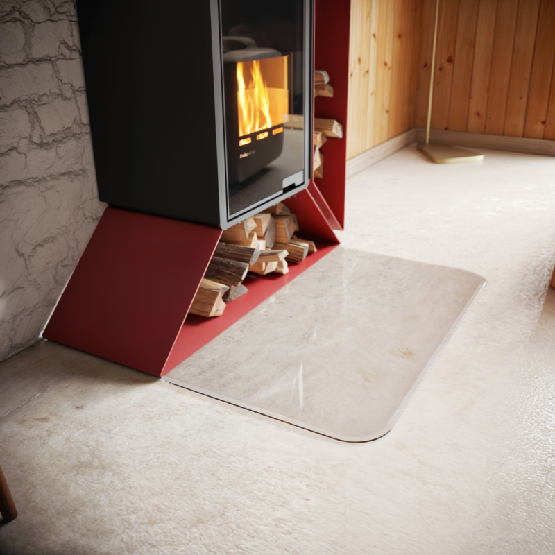 Sklo pod kamna - FLAMINGO Oblouk 700x450 mm, fazeta / R350 / 6 mm