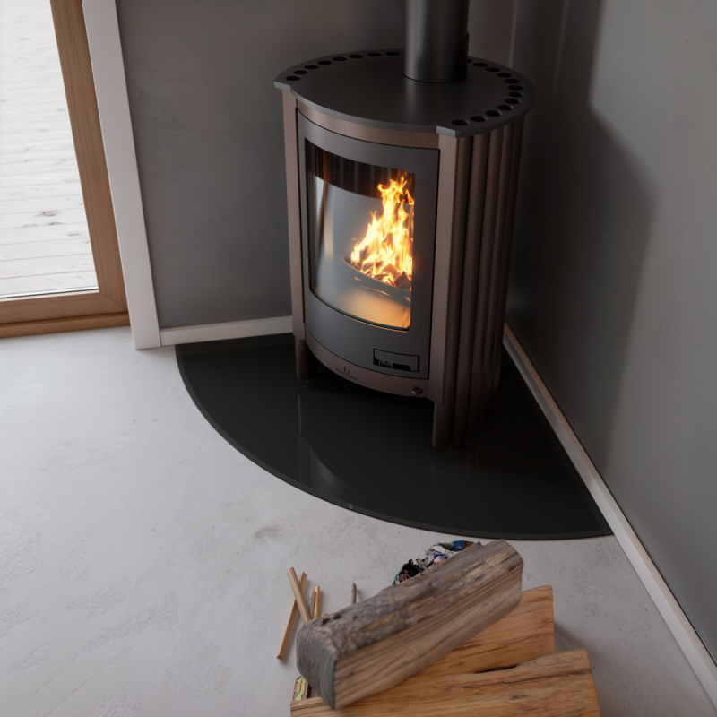 Sklo pod kamna - FLAMINGO Výseč 1000x1000 mm, černé, fazeta / 6 mm