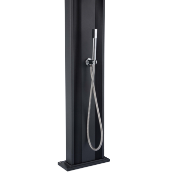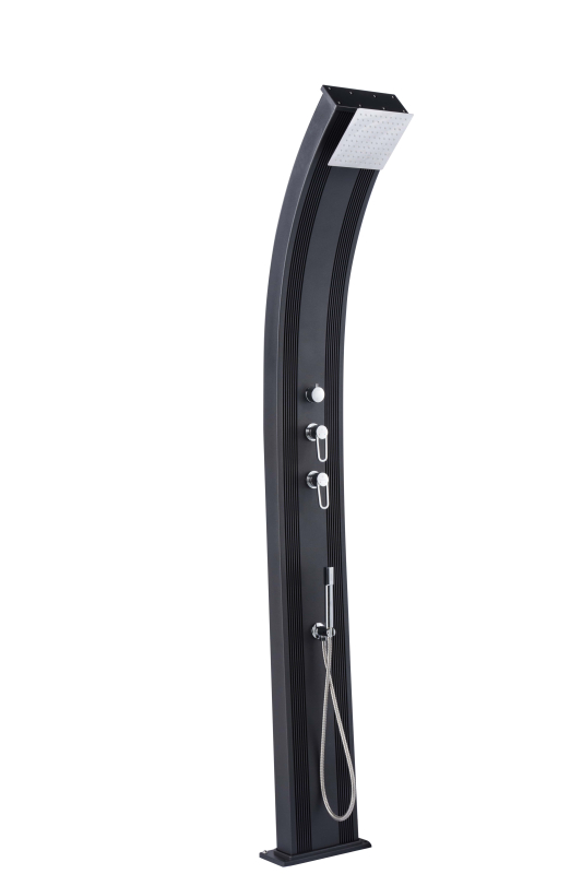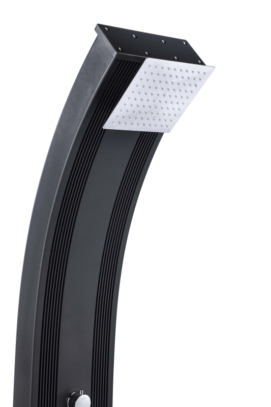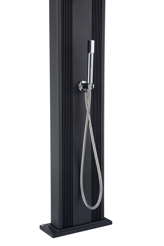 Tato elegantní sprcha DADA CURVE má zaoblený tvar, který podtrhuje její eleganci. Může se pochlubit velkým zásobníkem na vodu, do kterého se vejde 38 litrů vody. Je vyrobena z hliníku v antracitové barvě, který působí velmi moderně. Má samostatnou nerezovou sprchu pro oplach nohou a dostatečně velkou sprchovou hlavici pro oplach celého těla.