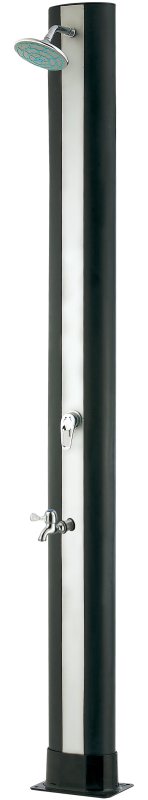 Druhá z řady našich solárních sprch. Blue Rainbow 2 je opět 214 cm vysoká, rozdílem oproti levnému modelu Blue Rainbow 1 je že má navíc i kohoutek na nohy, což je velmi praktická věc. Pohodlně si opláchnete nohy, například před vstupem do bazénu nebo do vířivé vany. Ohřev vody v tomto modelu je rovněž garantován černým povrchem solární sprchy. Je vybavena i designovým stříbrným pruhem uprostřed, který ocení náročnější zákazníci. Uvnitř solárních sprch je horká ohřátá voda slunečními paprsky, která se v mixovací nádrži smíchává se studenou vodu z vodovodního řádu přes zahradní hadici. Teplotu vody si regulujete jako ve vaně - pomocí pákové baterie.